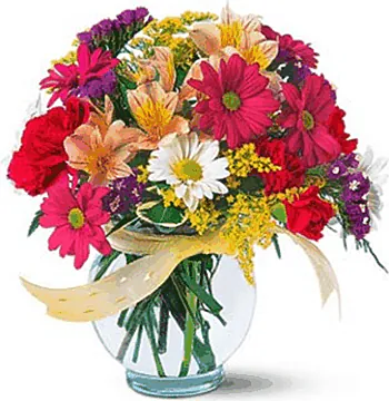 Beaux mélange de marguerites ou gerberas colorées.....parfum d'été!Vase non inclus